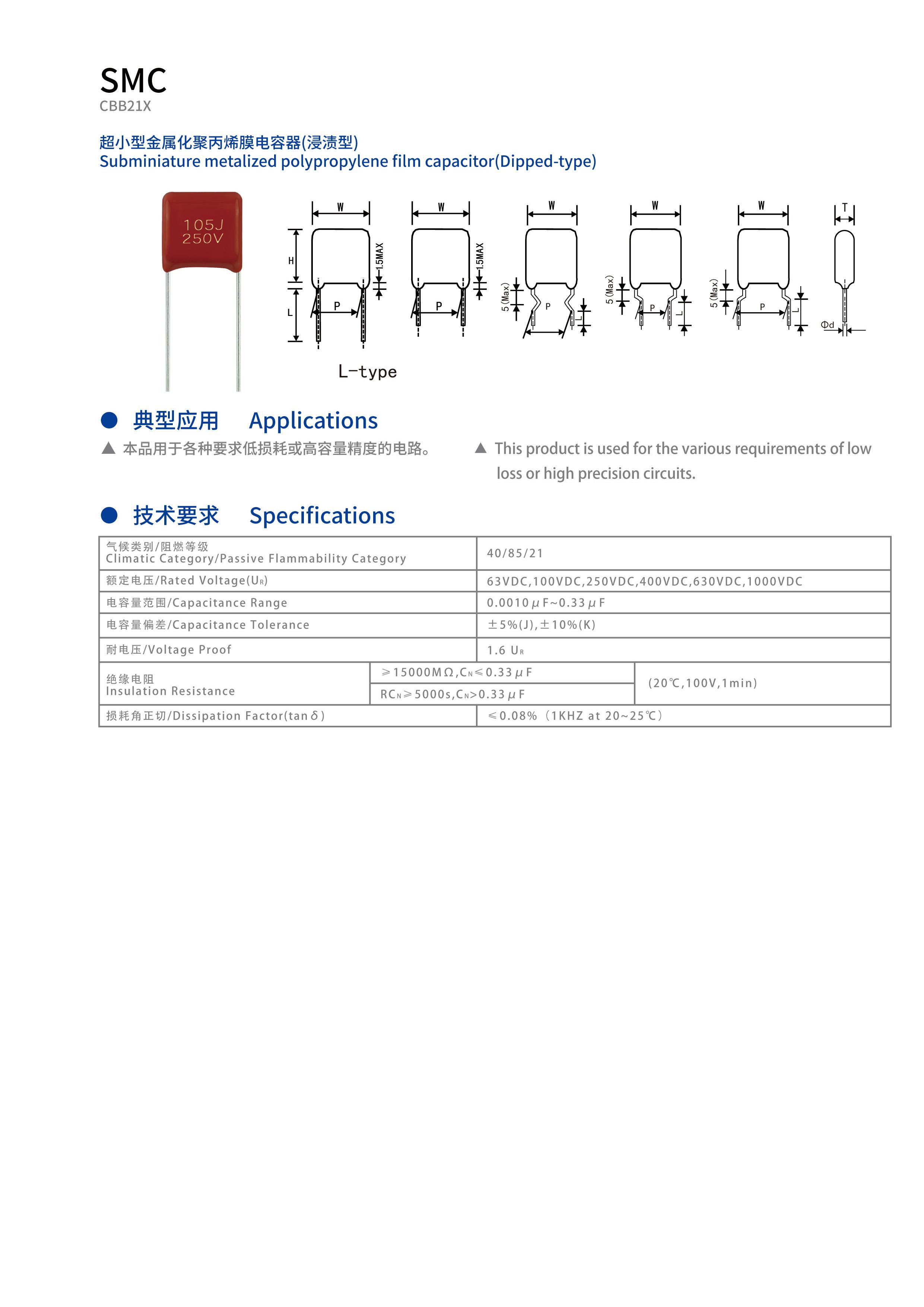 超小型金属化聚丙烯膜电容器(浸渍型)